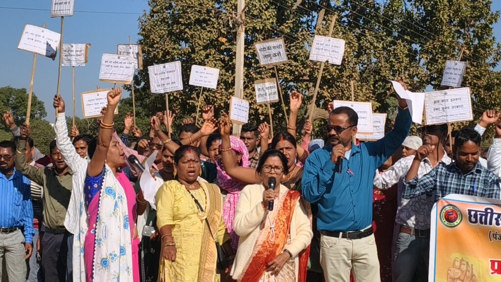 विगत 29 दिसंबर से नारायणपुर के बाजार स्थल में जिले भर के शासकीय कर्मचारी धरना-प्रदर्शन पर बैठे हुए थे। यह आंदोलन कर्मचारी अधिकारी फेडरेशन संघ के आह्वान पर आयोजित किया गया, जिसमें विभिन्न विभागों—शिक्षा, स्वास्थ्य, महिला एवं बाल विकास, नगरीय निकाय, लिपिक संवर्ग सहित अन्य विभागों के कर्मचारी शामिल हुए। आंदोलन के तीसरे दिन बुधवार दोपहर 3 बजे हजारों कर्मचारियों ने विशाल रैली निकालते हुए कलेक्ट्रेट की ओर कूच किया। रैली के दौरान “मोदी की गारंटी पूरी करो”, “हमारी मांगें पूरी करो”, “वेतन विसंगति दूर करो” जैसे नारों से पूरा नारायणपुर शहर गूंज उठा। जैसे ही रैली हाई स्कूल मैदान के पास पहुंची, पहले से तैनात सुरक्षा बलों ने रास्ता रोक लिया। इस दौरान आंदोलनकारियों ने जमकर नारेबाजी की। बाद में मौके पर पहुंचे नारायणपुर के SDM अभिजीत मांडवी ने आंदोलनकारियों से 11 सूत्रीय मांगों का ज्ञापन प्राप्त किया। मीडिया से बातचीत में कर्मचारी अधिकारी फेडरेशन संघ के पदाधिकारियों ने कहा कि यह आंदोलन केवल कर्मचारियों के हितों से जुड़ा नहीं, बल्कि प्रदेश के प्रशासनिक ढांचे को मजबूत करने की मांग है। संघ ने सरकार को दो टूक चेतावनी दी कि यदि उनकी मांगों पर शीघ्र सकारात्मक निर्णय नहीं लिया गया, तो कर्मचारी अधिकारी एवं पेंशनर पूर्णतः कार्य बंद कर अनिश्चितकालीन आंदोलन पर बैठेंगे। ऐसी स्थिति में विभागीय कार्यों में आने वाली बाधाओं और जनता को होने वाली असुविधा की जिम्मेदारी शासन-प्रशासन की होगी।