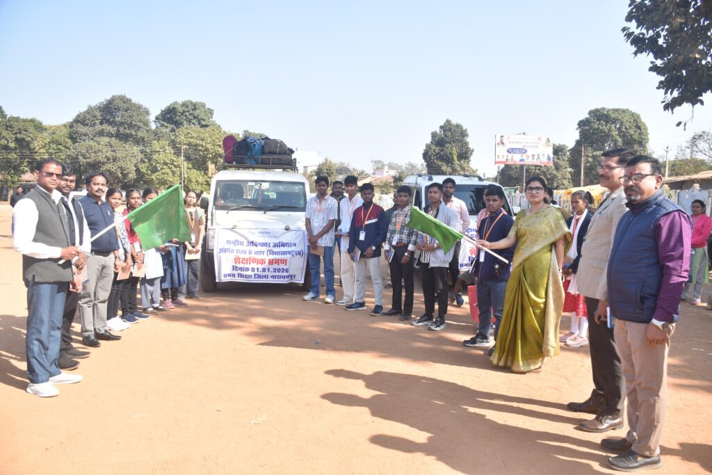 नारायणपुर जिले के प्रतिभावान छात्रों के लिए नए साल (2026) का आगाज बेहद खास और रोमांचक रहा। जो विज्ञान अब तक केवल किताबों के पन्नों में सिमटा था, अब उसे अपनी आंखों से देखने और समझने का मौका इन बच्चों को मिलने जा रहा है। ‘राष्ट्रीय आविष्कार अभियान’ के तहत जिले के चयनित विद्यार्थियों को विज्ञान और तकनीक की दुनिया से रूबरू कराने के लिए विशाखापट्टनम के शैक्षणिक भ्रमण पर भेजा गया है। साल के पहले दिन, यानी 1 जनवरी दिन गुरुवार को दोपहर 2 बजे कलेक्टर नम्रता जैन ने शासकीय बालक उच्चतर माध्यमिक विद्यालय के मैदान से बस को हरी झंडी दिखाकर इस ज्ञान-यात्रा की शुरुआत की।